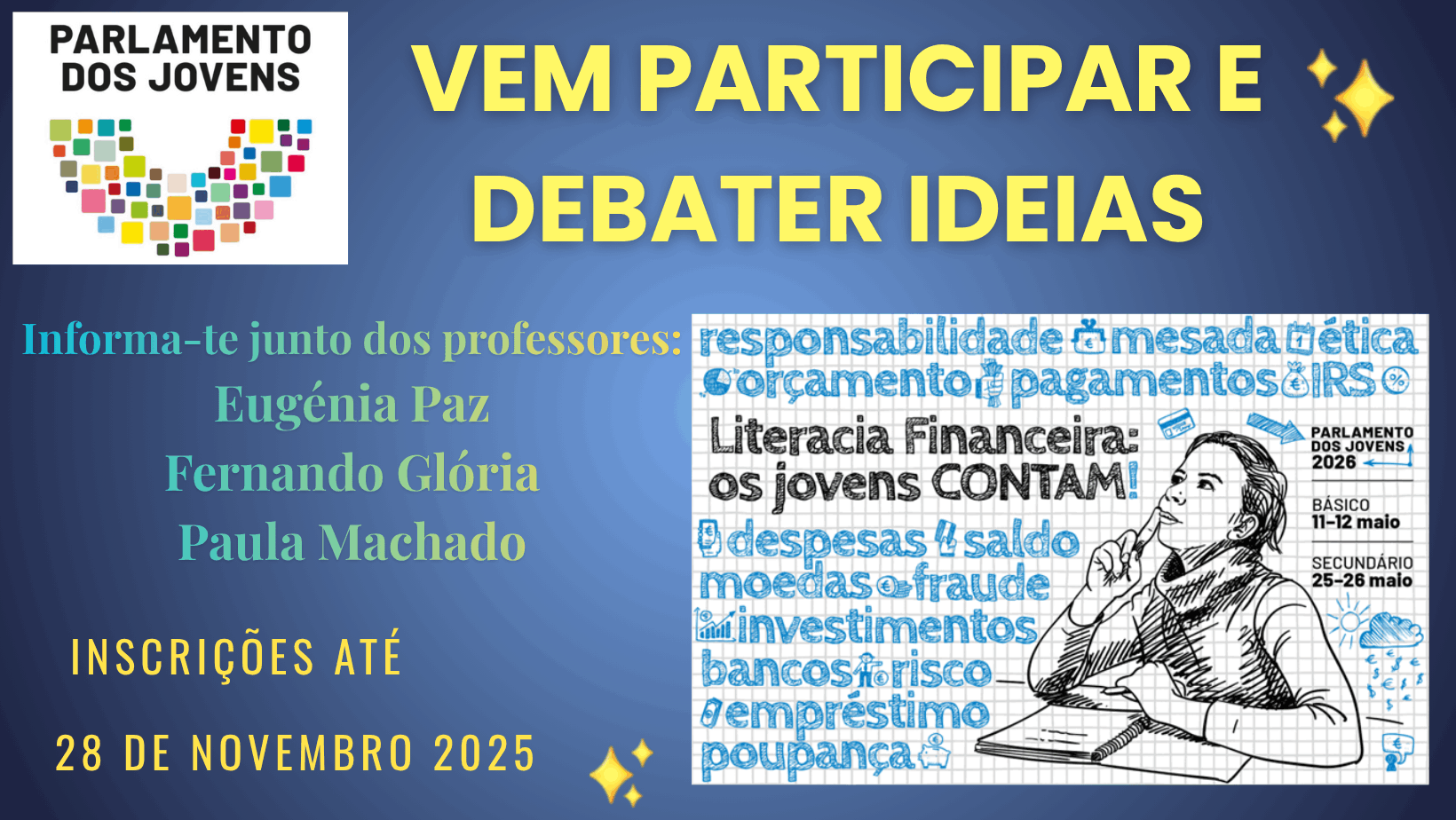 Projeto destinado aos formandos de todos os cursos profissionais ministrados no nosso Agrupamento, desde que haja candidatos, que se encontrem a frequentar o 2º e/ ou 3 º ano dos mesmos no ano letivo 24/25.